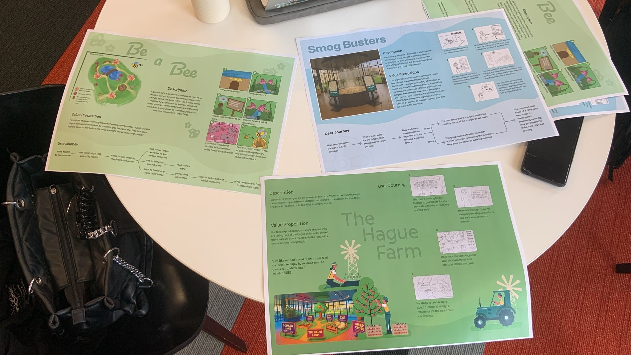 Be a Bee is a design project for Museon-Omniversum and The Hague University of Applied Sciences. The challenge was to translate the complex, policy-heavy "Hague Climate Agreement" into an engaging, personal, and interactive exhibition that inspires local residents to take climate action.