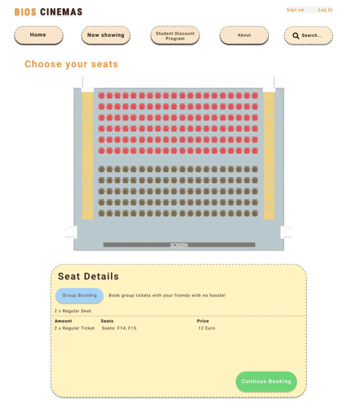 The project resulted in a user-centered website design that streamlined the ticket purchasing process and introduced community-building features. Key deliverables included a "Student Perks Program" to drive loyalty and a "Group Booking" feature to enhance the social cinema experience, directly addressing the client's goal of leveraging digital interaction to increase market share.