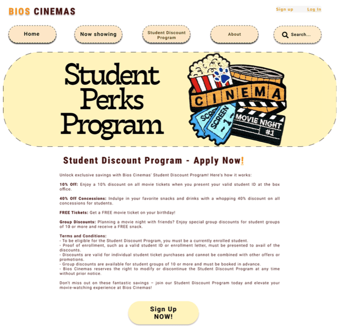 Furthermore, the project addresses the challenge of informing students about discounted movie rates, offering structured recommendations to enhance user engagement, group booking features, affordability, and accessibility. By aligning with user-centric design principles and business objectives, the solutions aim to create a cinema website that meets the diverse needs of its target audience, leading to improved customer satisfaction and engagement.